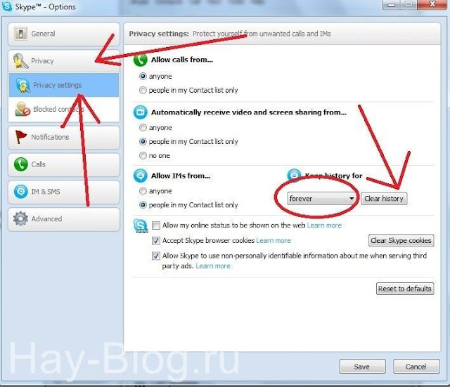 3.Բացված էջում սեղմեք Privacy->Privacy Settings, այնուհետև նշեք ժամանակահատվածը և սեղմեք Clear history